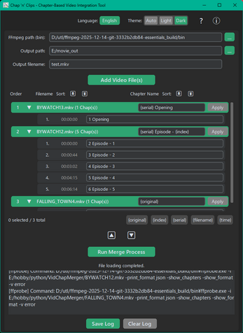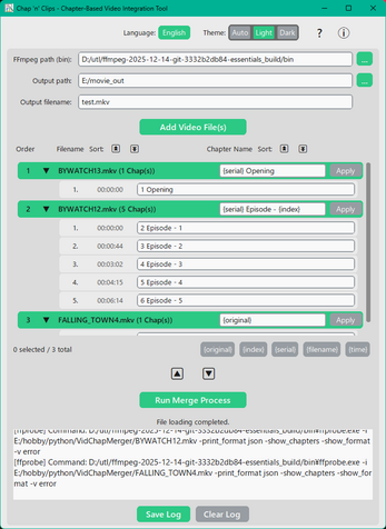 - ๐ก๏ธ Chapter Preservation & Editing Merge multiple video files into one without stripping away original chapter metadata. Unlike other tools, you can also rename chapters and reorder them before merging.